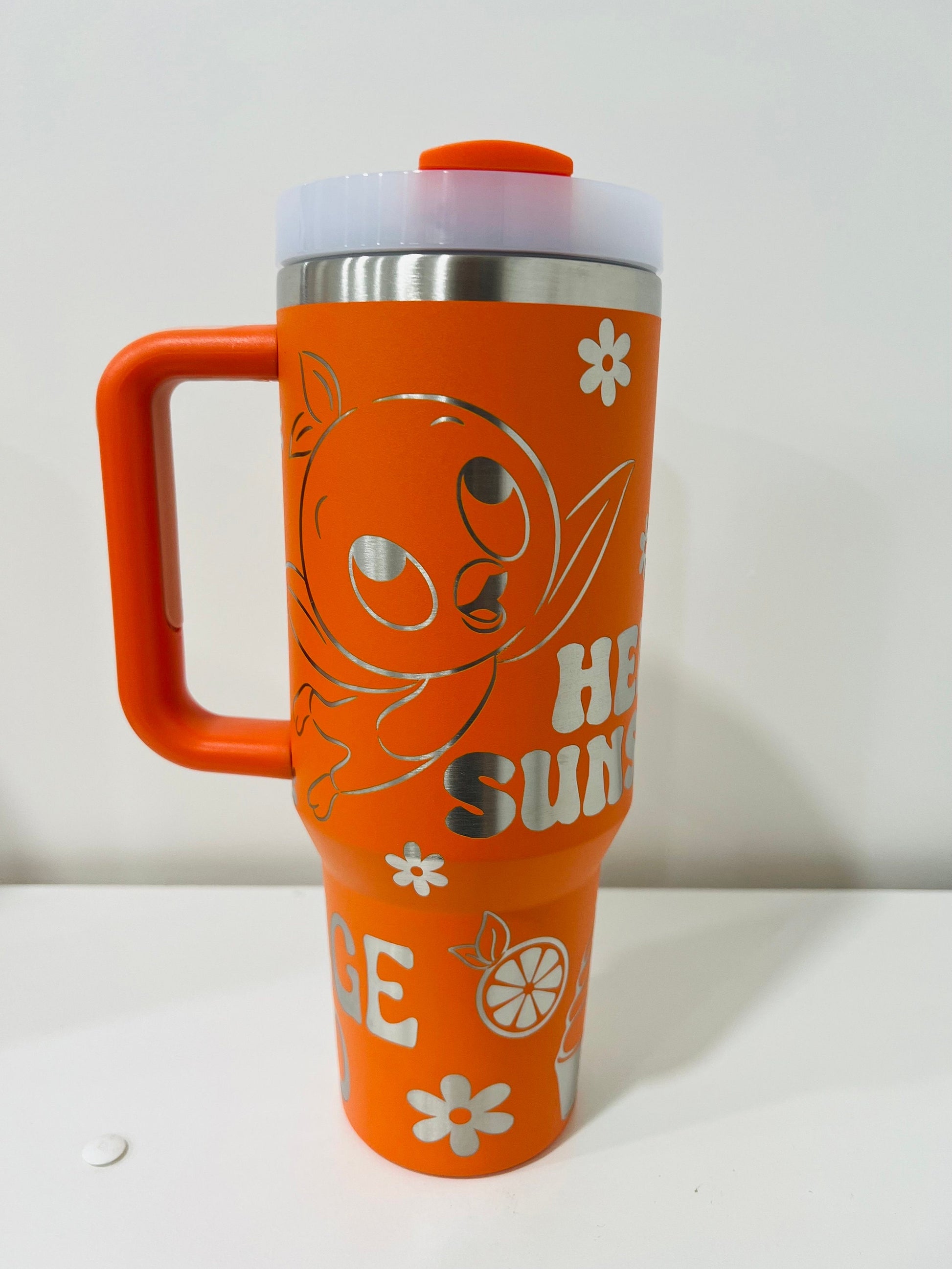 Unbranded Orange Bird 40 oz double insulated tumbler.