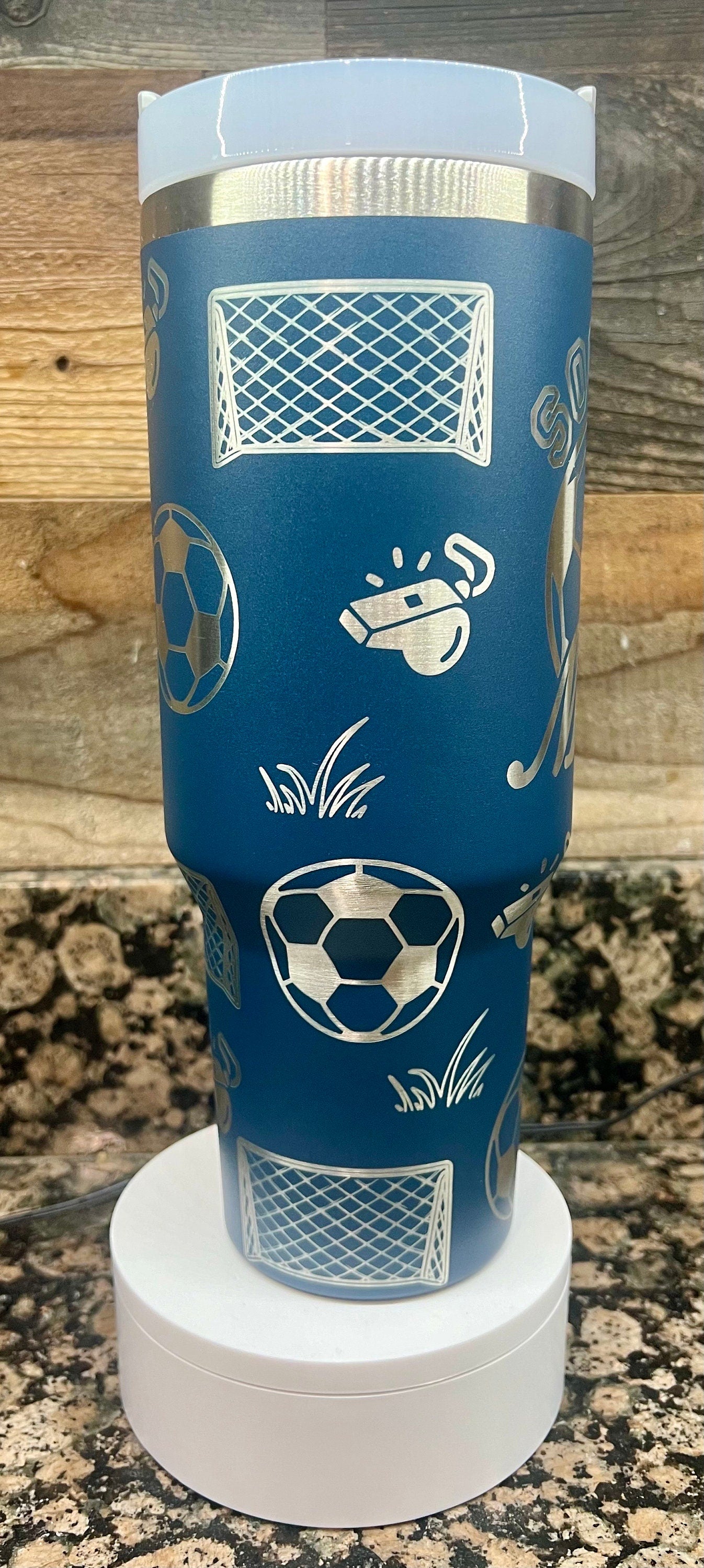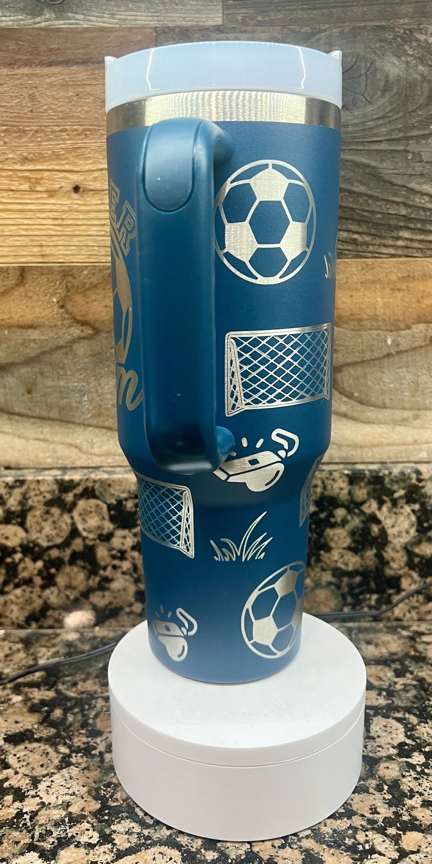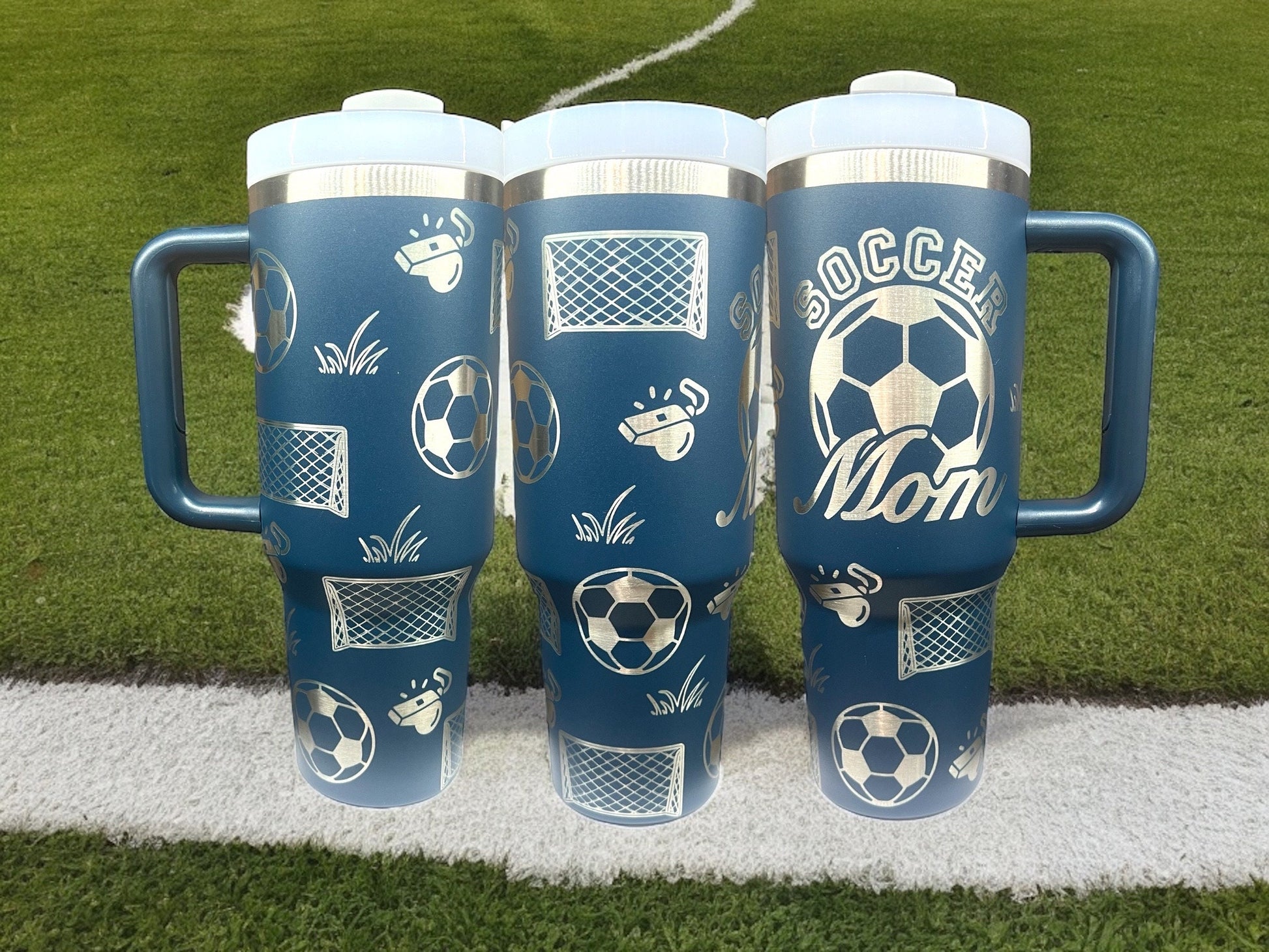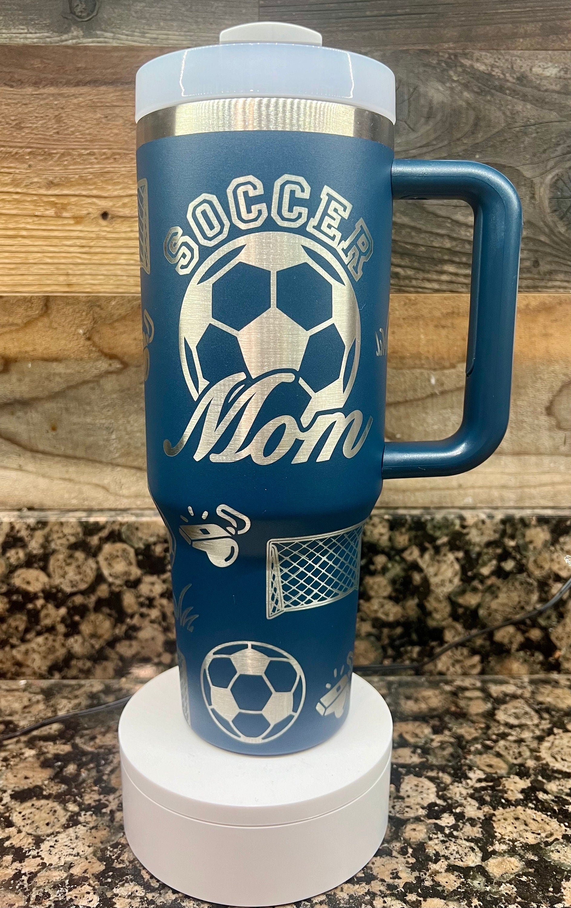 Unbranded Soccer Mom 40 oz double insulated tumbler.
