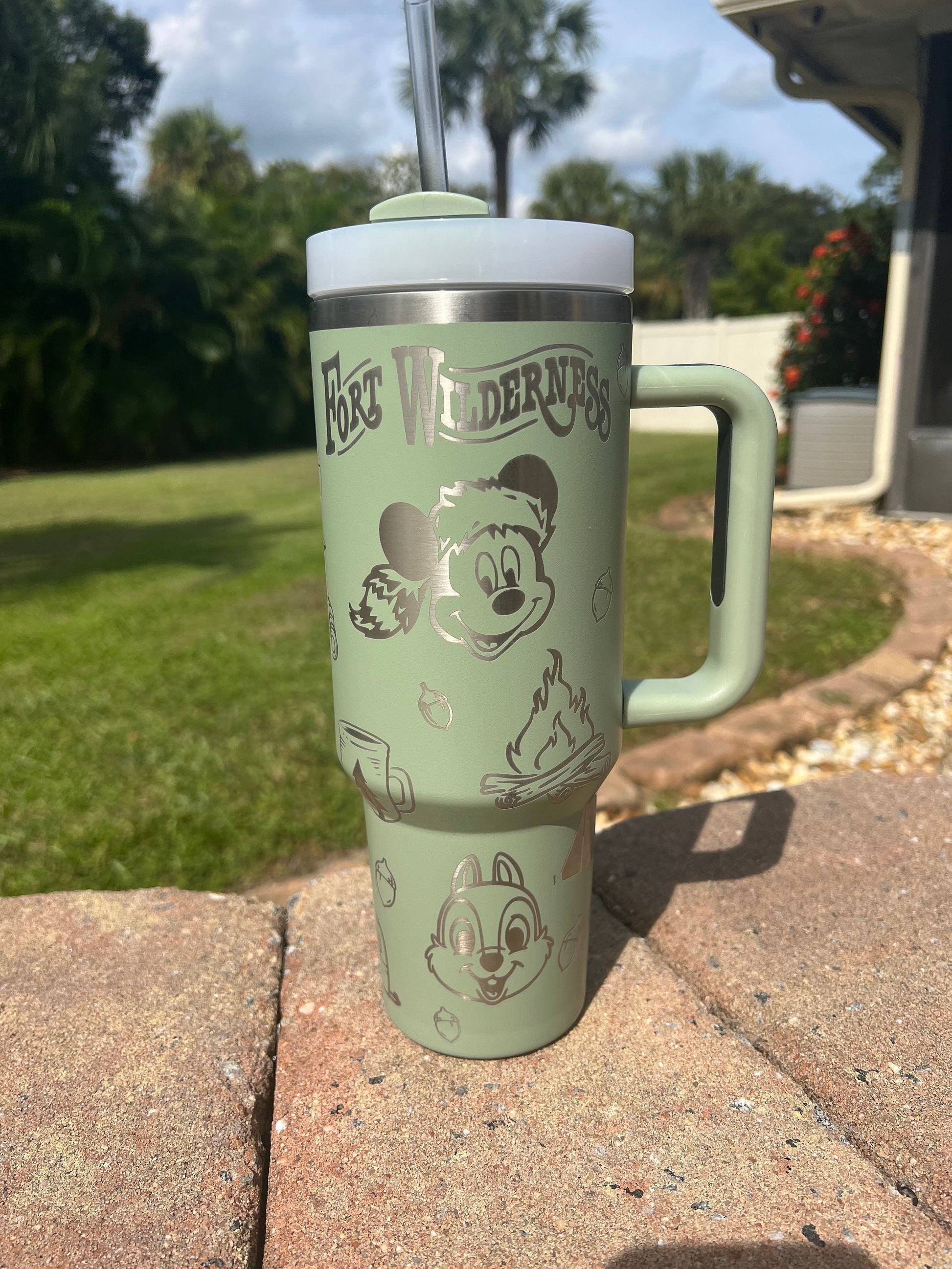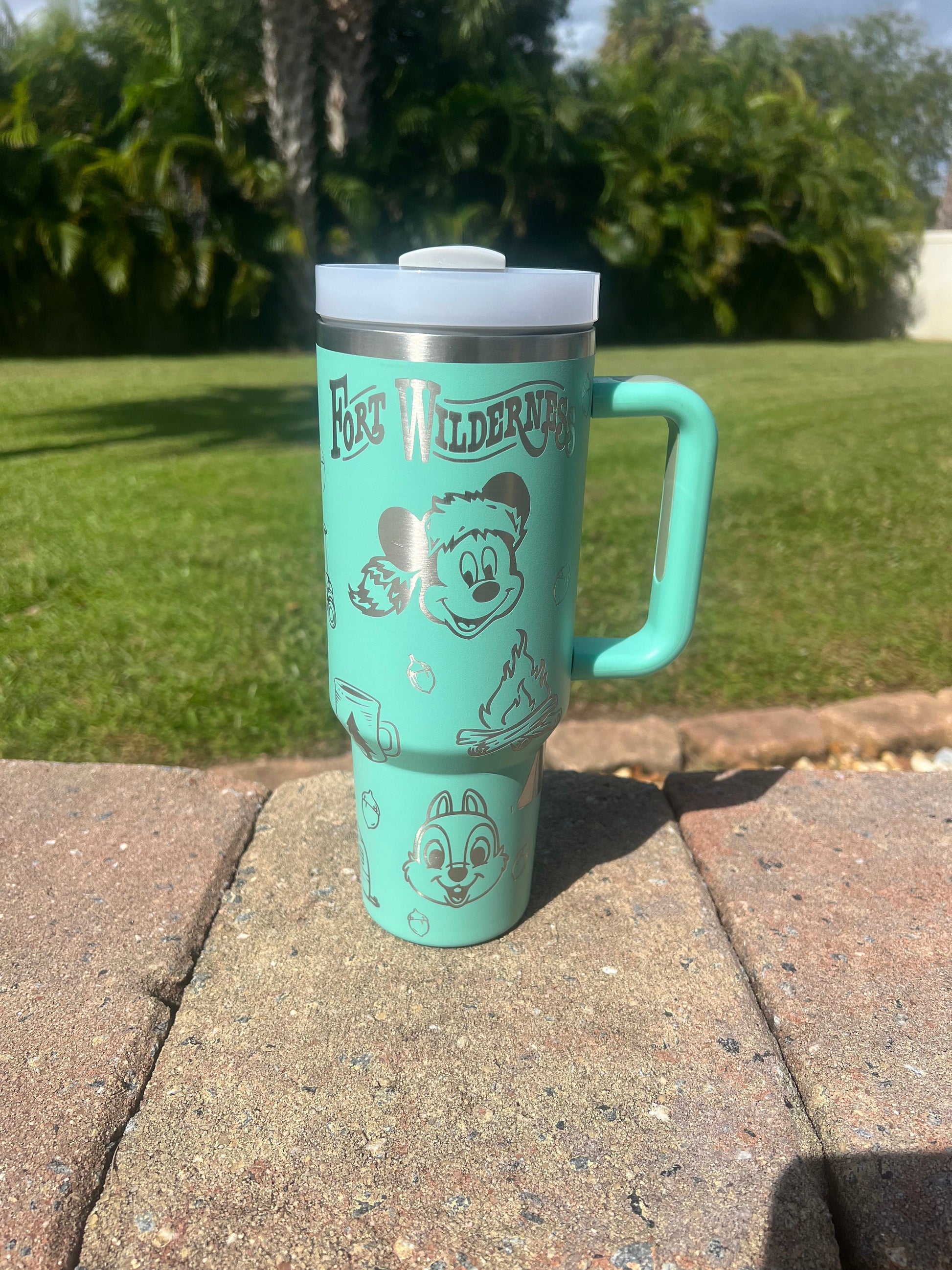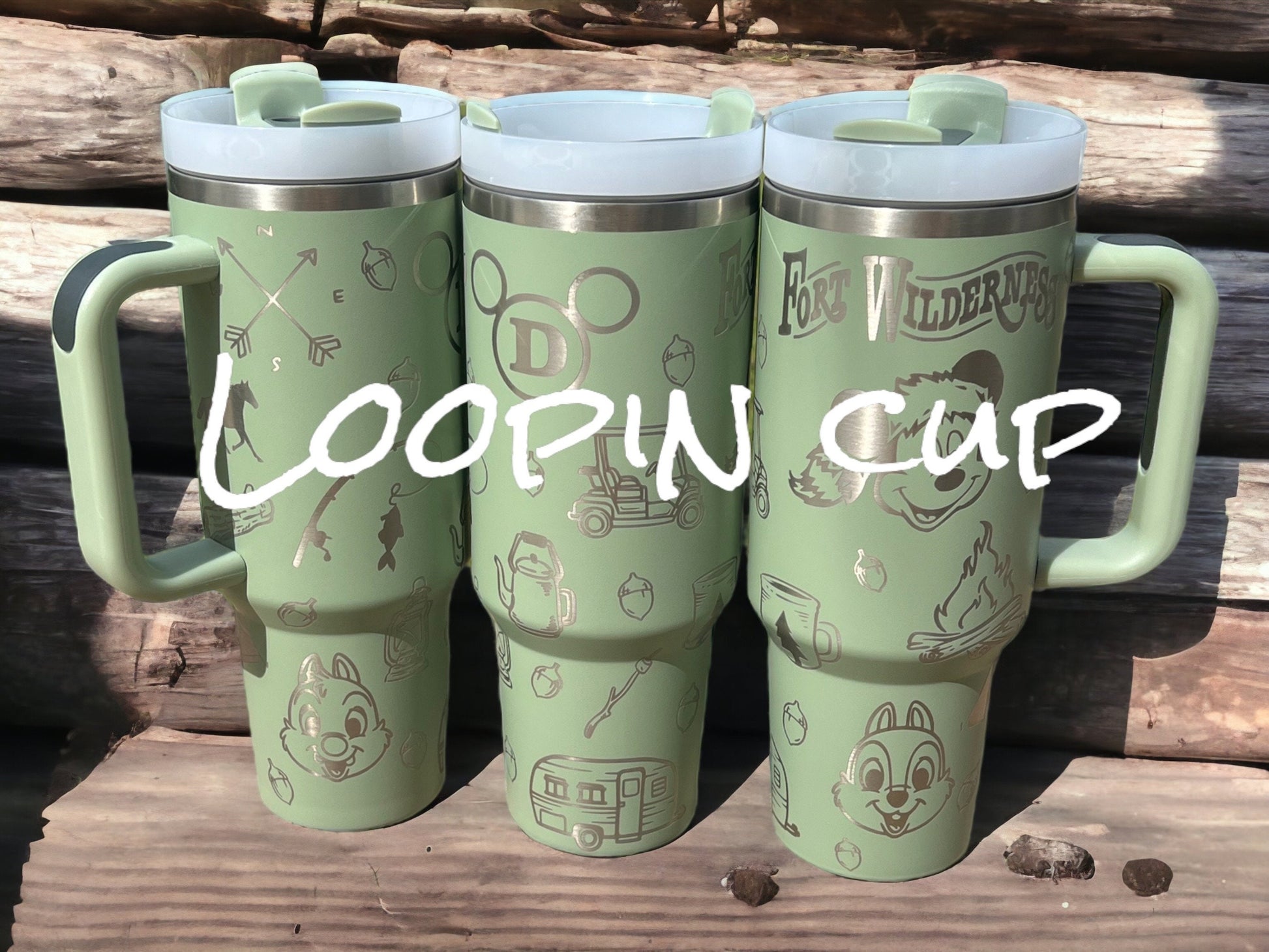 Unbranded Fort Wilderness Looping inspired 40 oz double insulated tumbler.