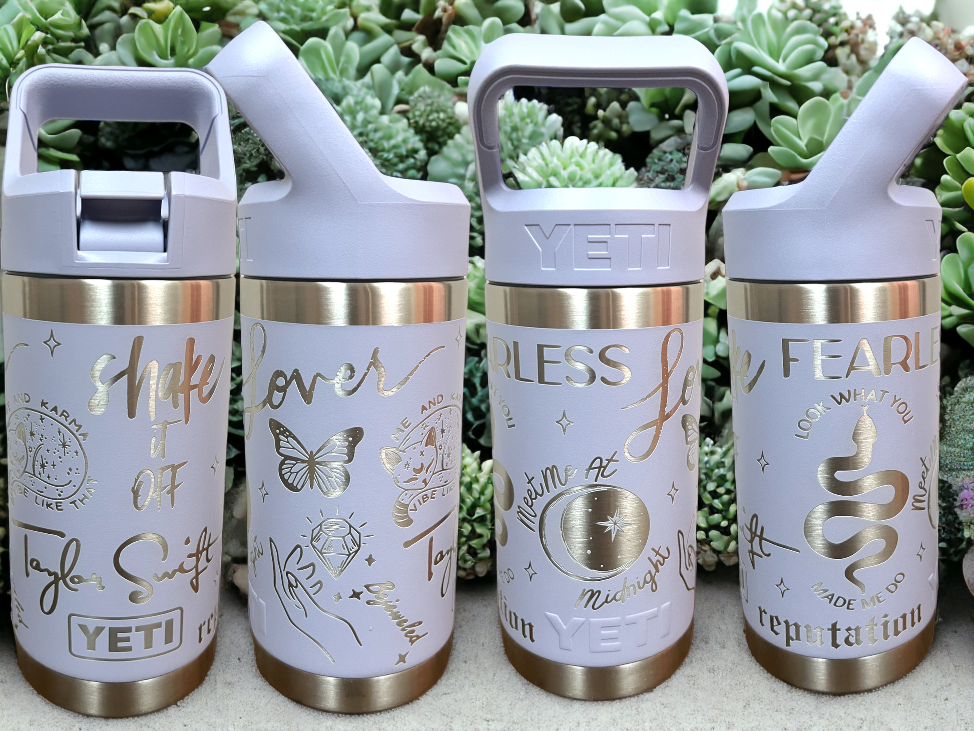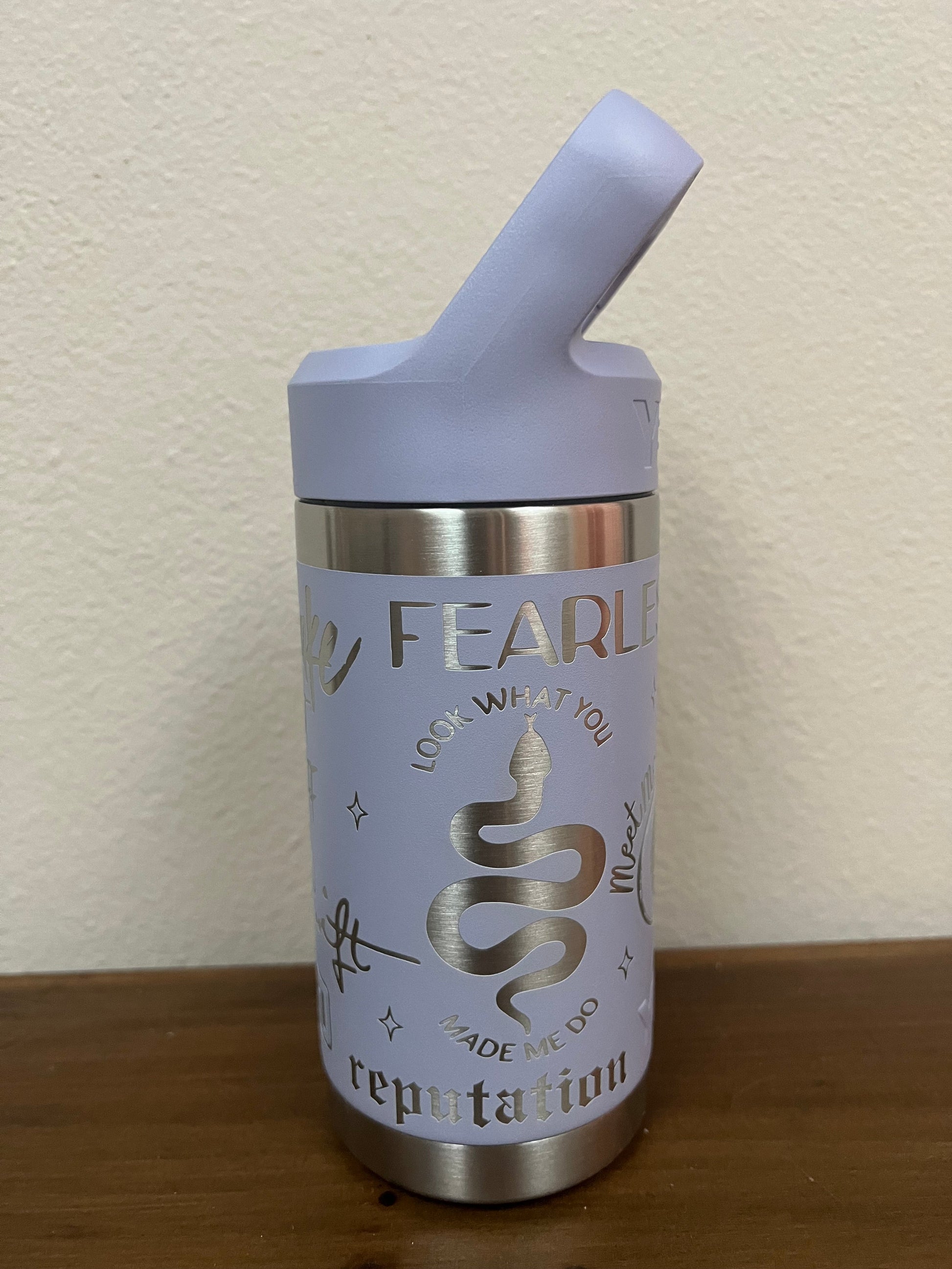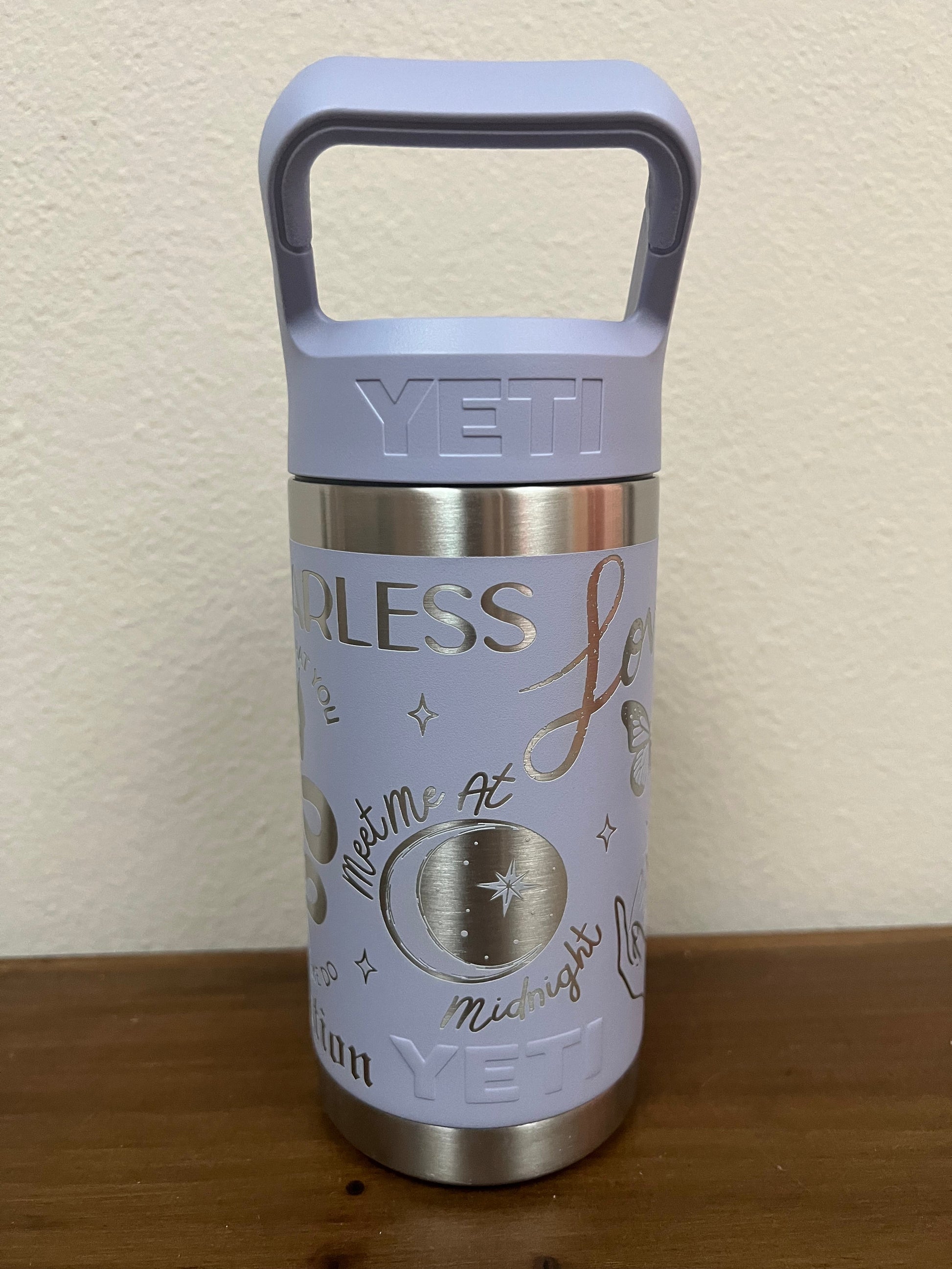 12 oz Yeti Rambler Jr with Eras Design. This is a laser engraved stainless steel double insulated tumbler.